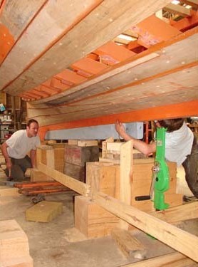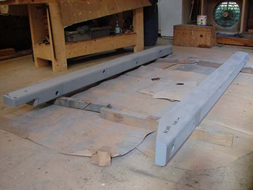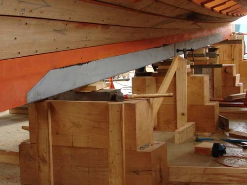 Un lest extérieur en fonte en deux parties est boulonné sous la quille. Il a été coulé sur mesure pour le bateau à partir du modèle en bois.